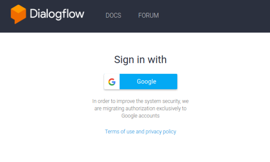 Para empezar necesitas tener una cuenta en Google y crear una cuenta en DialogFlow usándola (hay otras formas, pero este punto no lo voy a abordar). Tras acceder a la consola de la herramienta, haz clic en el botón escrito de Google y permitir las solicitudes. Se presentarán los términos de servicio y otras preguntas, entonces usted debe estar de acuerdo con ellos.